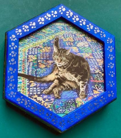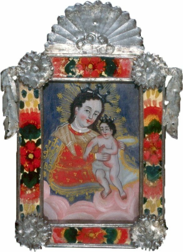 University of New Mexico I have been interested in painting on metal since seeing Retablos, a sacred Latin American art. Retablo paintings are lodged in shrines to petition a saint or to honor a favor granted.