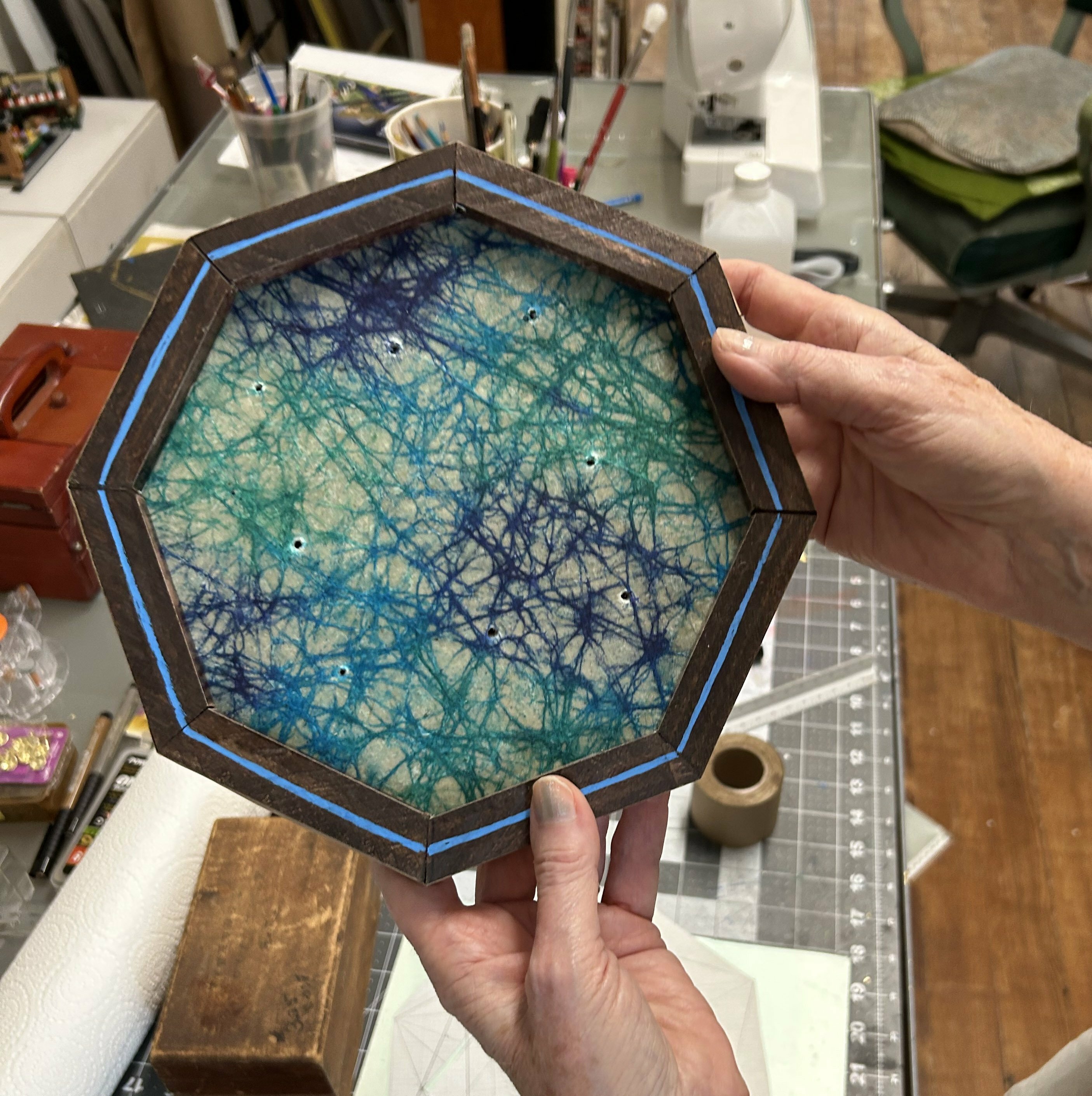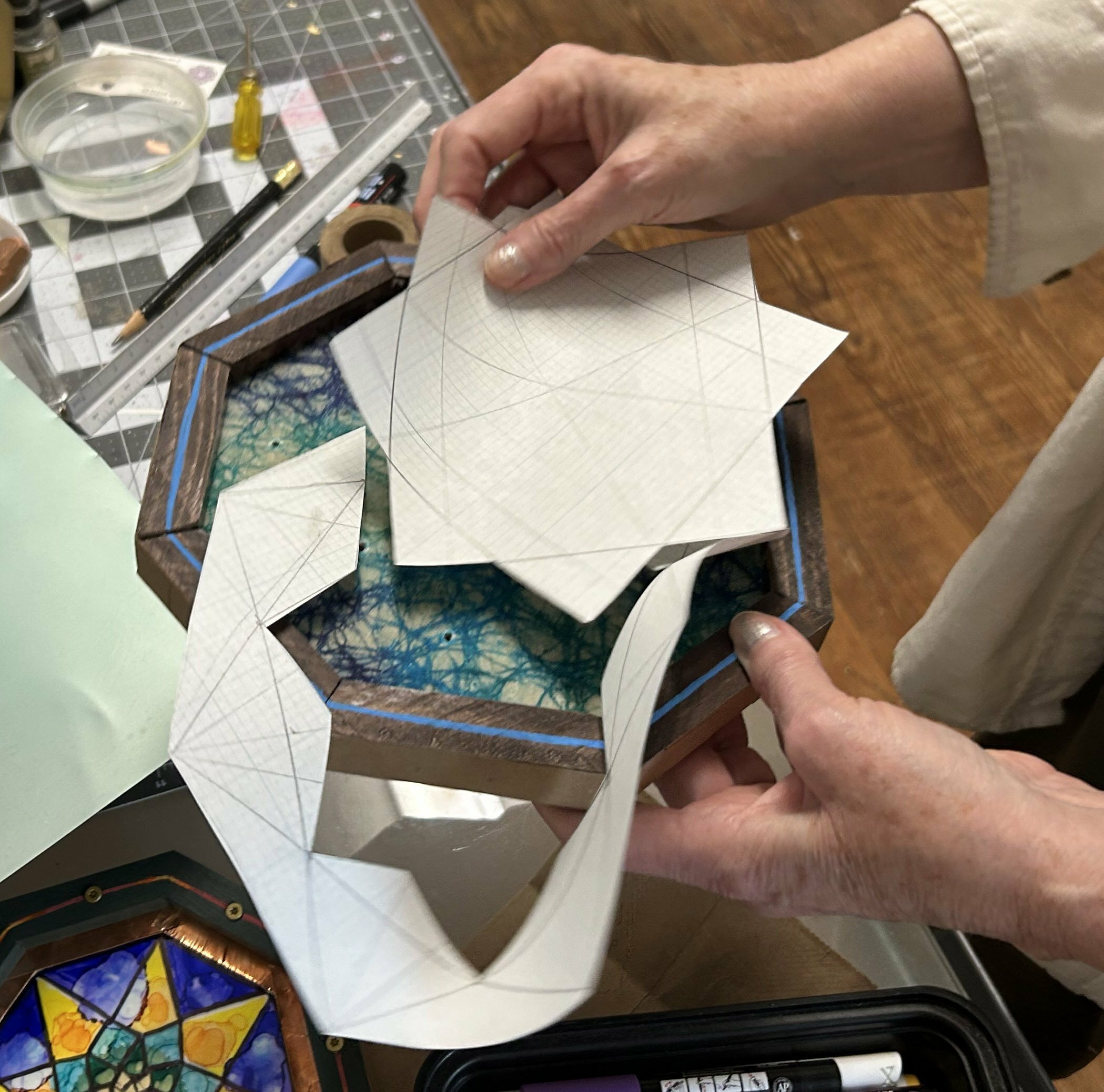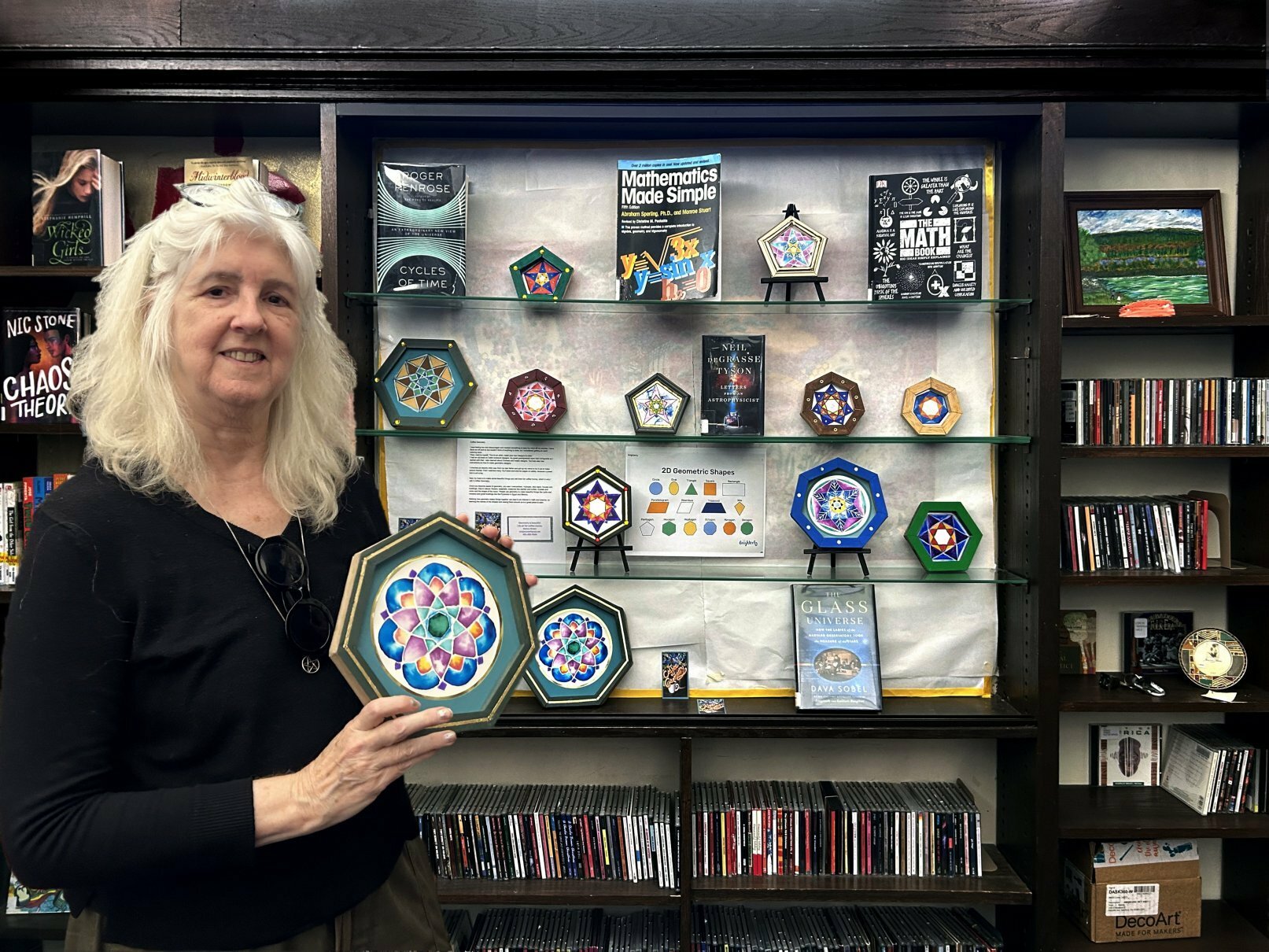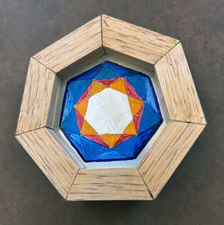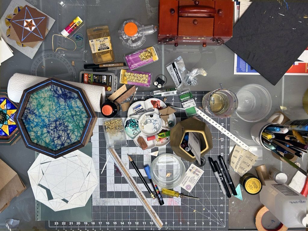 Harkey collection There is a practice called Sacred Geometry. Although making my art has become a spiritual practice, I call what I do “Coffee Geometry” — crafting my art for coffee money. I’m cautious of seeming to peddle spirituality. The buyer will find their own meaning in my pieces. It makes me happy when I can make something with beauty and harmony. Young people exposed to geometry could become curious about math, leading to things like carpentry and engineering or even how to aim spaceships in the right direction.