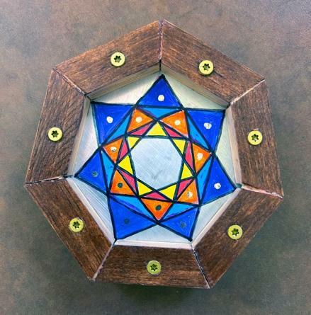Shapes have meaning depending on context. Geometrically, odd numbers are more dynamic, even ones more stable. I was drawn toward odd-pointed stars, especially the 7-sided heptagram, which you don’t see around much.