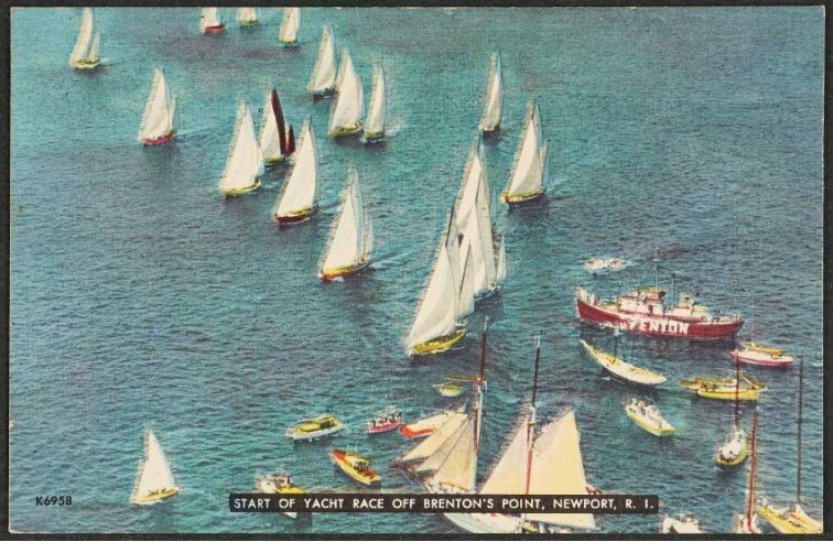 Postcard showing the now-gone Mackerel Cove Beach pavilion. “The Conanicut Yacht Club, which has been around since 1892, sponsors the Around the Island Race every Labor Day,” she added. “And Mackerel Cove—there was an enormous bathing pavilion there. You can’t believe it by looking at it now. There were once three golf courses in Jamestown,” she said. “Now there’s just one. In the 1920s, there was even an eighteen-hole course out at Beavertail. On both sides of the road!” She laughed, recalling a book about lost golf courses cleverly titled Missing Links.”