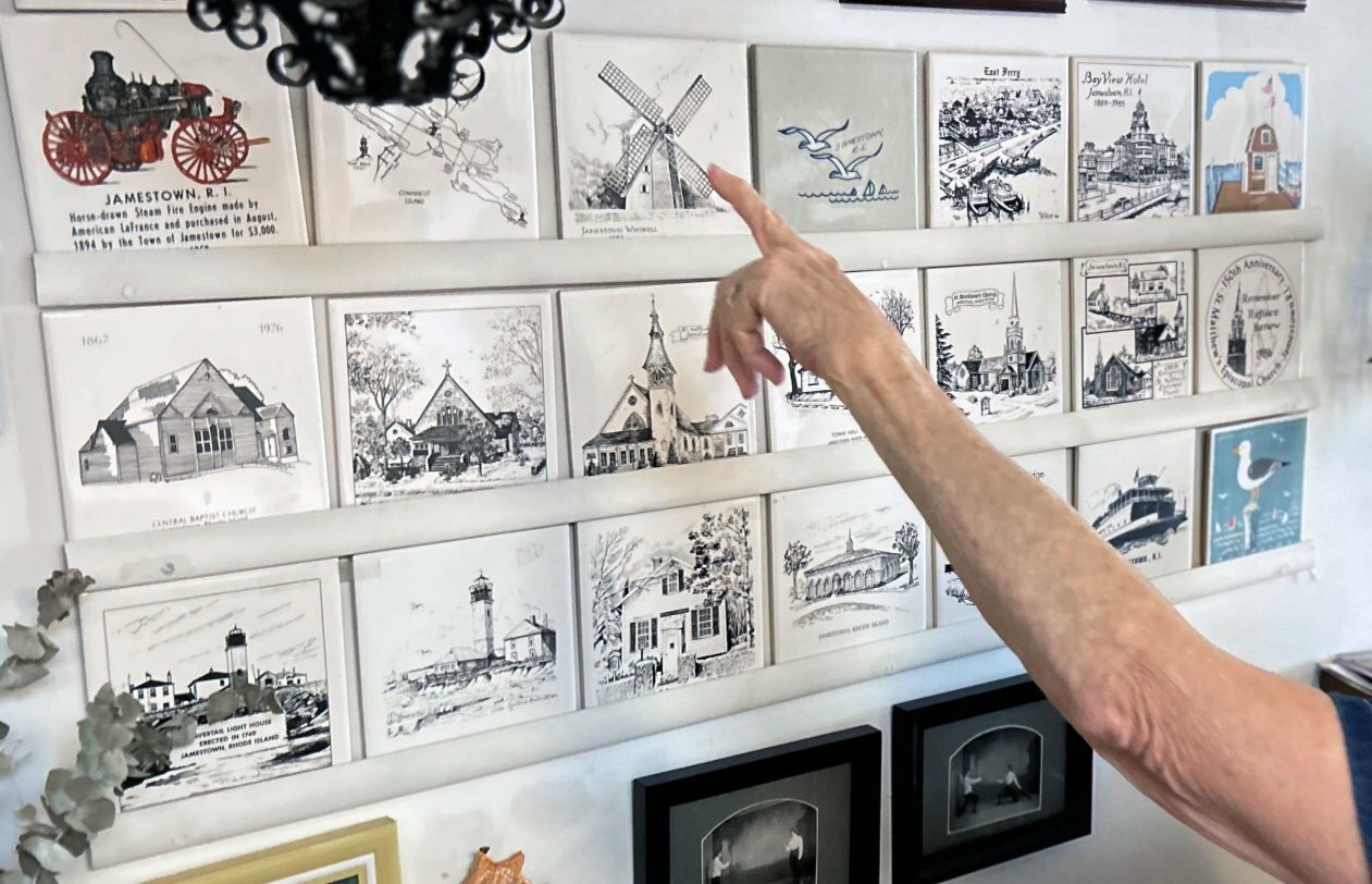 Her connection to the island runs deep. “I first came here at six weeks old,” she recalls, describing herself as a fourth-generation summer visitor. When she and her husband, Phil, retired in 1982, they moved to Jamestown permanently. “I was a little young to retire, but I did, and I immediately thought, ‘What am I going to do with myself?’ I got involved with the Friends of the Library, the Conanicut Island Art Association, the Garden Club, and the Jamestown Historical Society. Phil was happy to have me busy so he could read The New York Times from cover to cover.