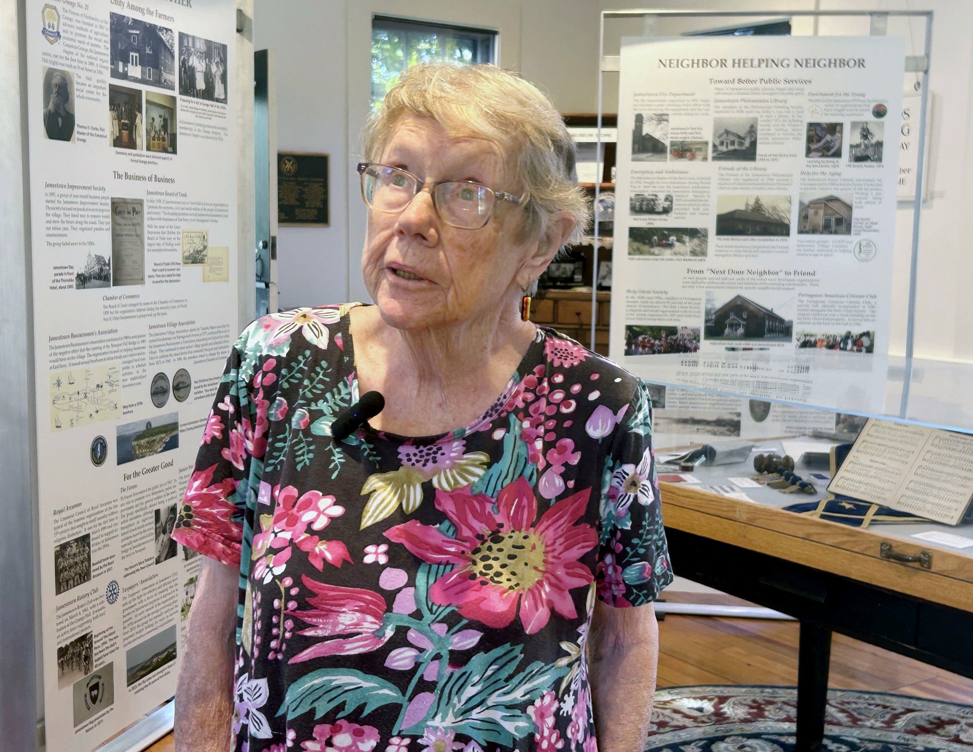 I was here with Sue for a tour of the museum, where she serves on the Exhibit Committee. Each year the committee faces what Sue calls “a big decision”: choosing a theme broad enough to tell many stories, but specific enough to draw from the Society’s vast collection. “This year’s exhibit is about civic organizations, the lifeblood of Jamestown.”