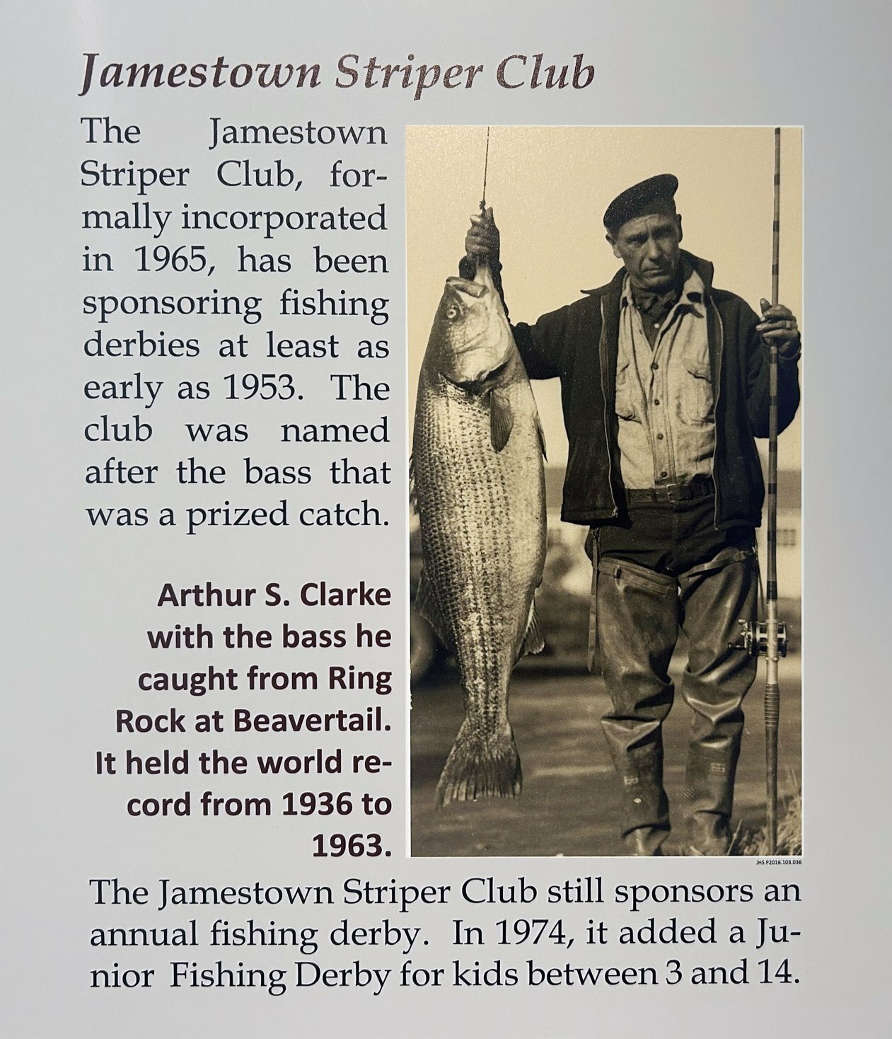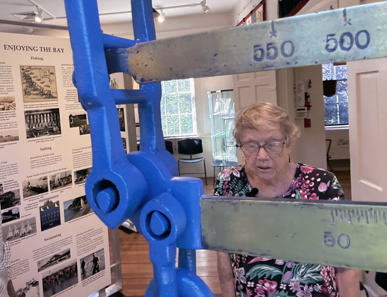 “The Jamestown Striper Club has been around for probably fifty years and is still active. This was the scale they used to weigh the catches,” Sue said, pointing to the metal relic once set up at Fort Wetherill during the Club’s fishing tournaments. The Striper Club, named for striped bass, used to meet in the Portuguese-American Club, which served as the whole island’s community center for decades. “It was where people gathered. They played basketball there, held events, and the Striper Club gave their awards there. These groups gave the island its social fabric. It was a major disappointment when the town decided to tear down the P-A Club’s building.”