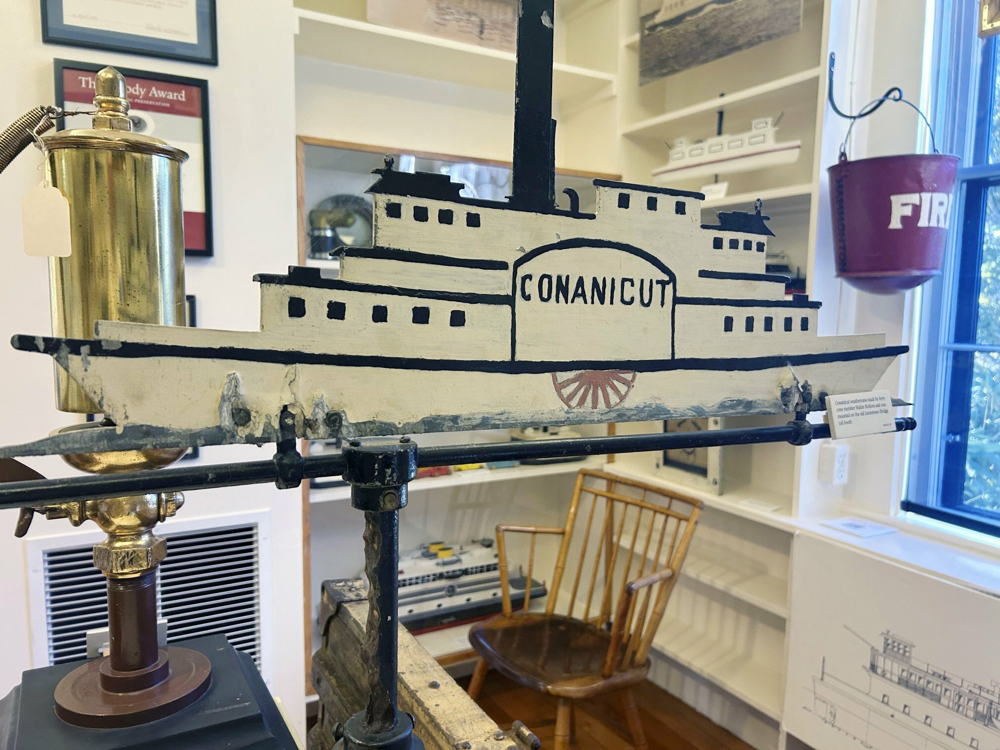 In another room — the Ferry Room — the island’s long era of isolation comes to life. “At one time, Jamestown had ferries on both sides. They were our only connection to the mainland.” The ferries stopped running in 1969, but their legacy remains through models, photographs, and memorabilia crafted by Jamestown residents. “In 1985, we did oral histories with people who worked for the ferry company. So many families here had someone who did.”